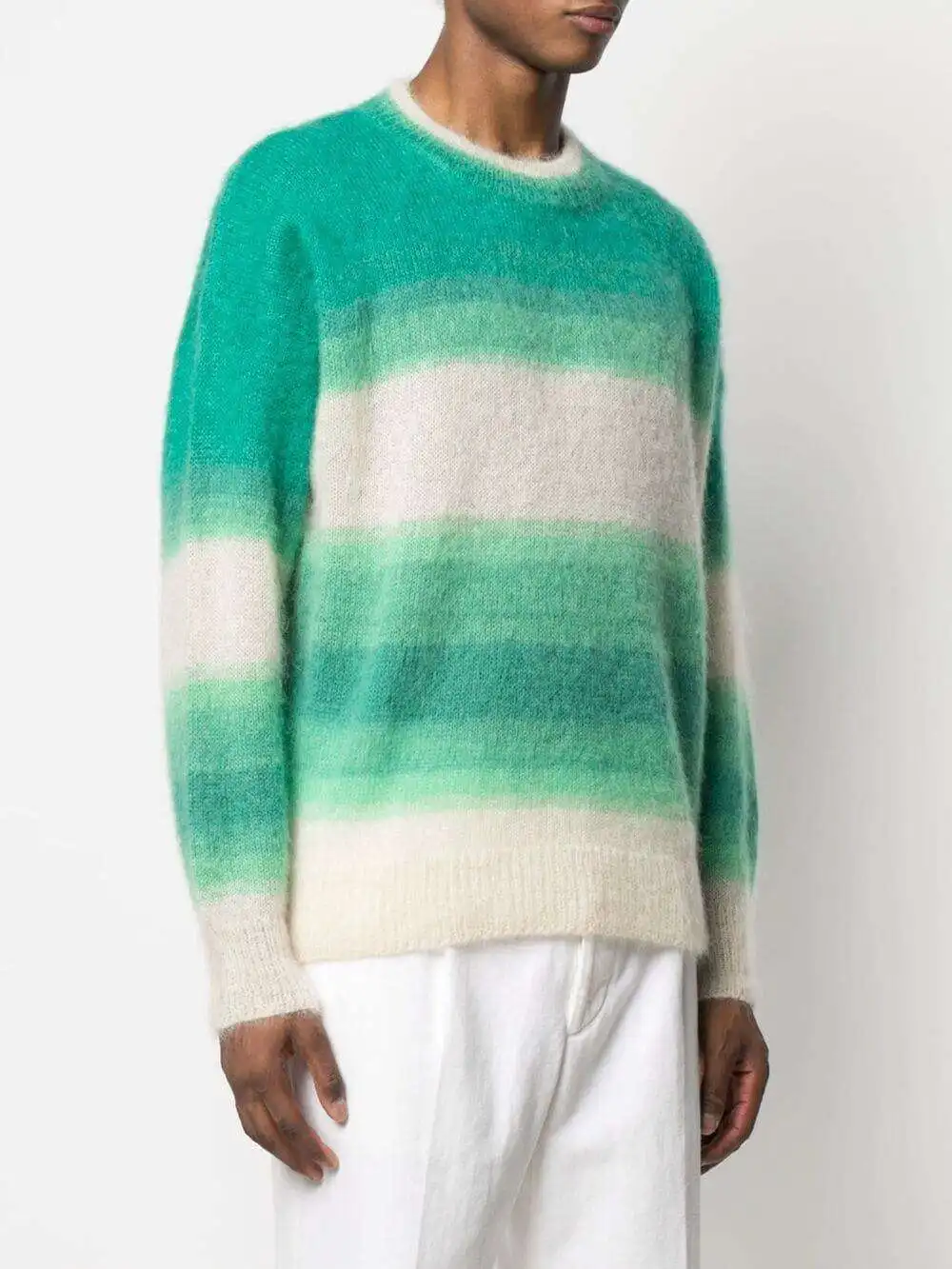 Mohair Sweaters Men Fuzzy Long Sleeve Knitwear Winter Pullover Striped Knit Men Knitted Mohair Sweaters
