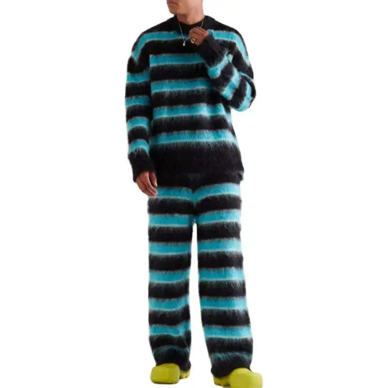 Men Knit Sweater Trousers Winter Knitwear Men Knitted Pants Fuzzy Men Drawstring Mohair Knit Pants Men