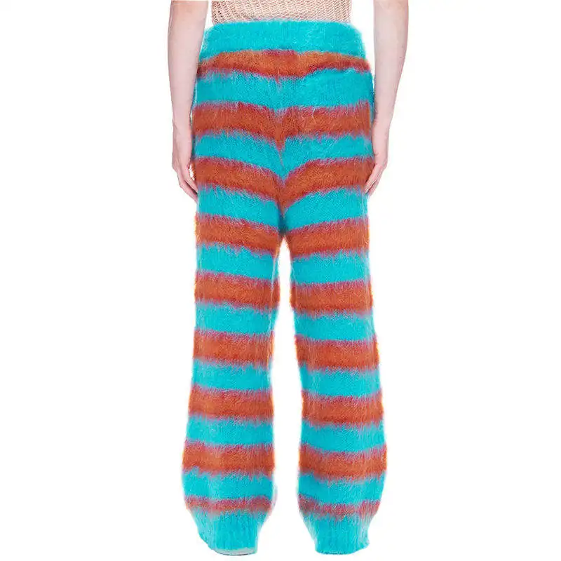 Men Mohair Pants Knitted Designer Sweater Trousers Drawstring Fuzzy Winter Loose Knit Pants Men