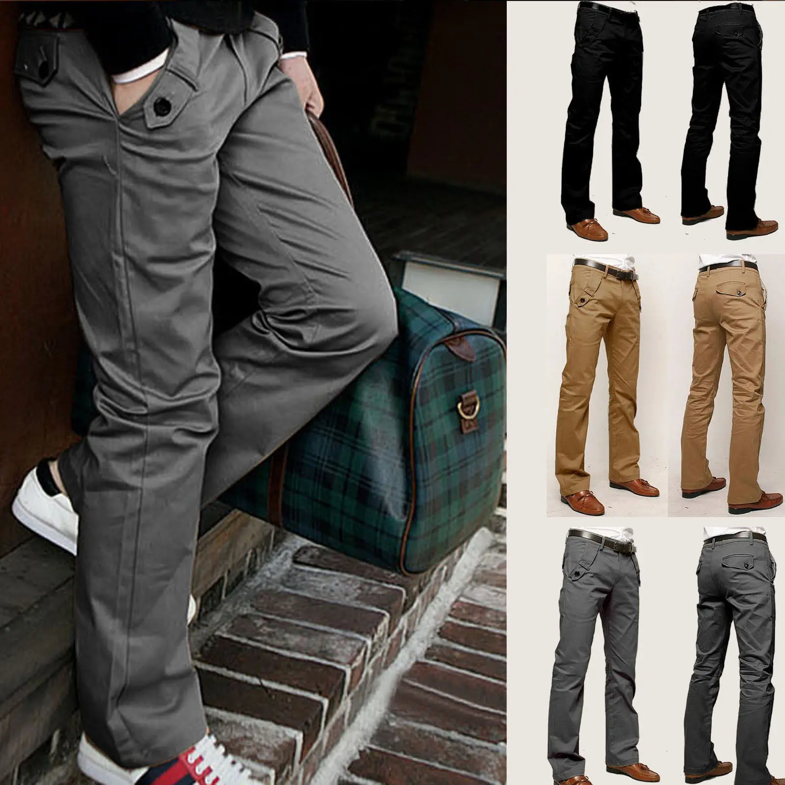 Mens Casual Slim Fit Straight Long Trousers Formal Dress Leisure Cotton Pants