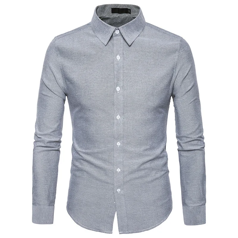 Casual Men Plain Oxford Cotton Long Sleeve Shirts