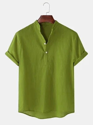 Provide Stylish Casual Shirts for Men Stand Collar Short Sleeve Shirts