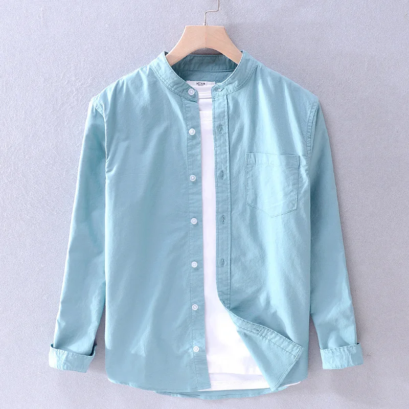 2026 Spring Men Long Sleeve Shirt Stand Collar Casual Tops Male Solid Color Button up Dress Shirt