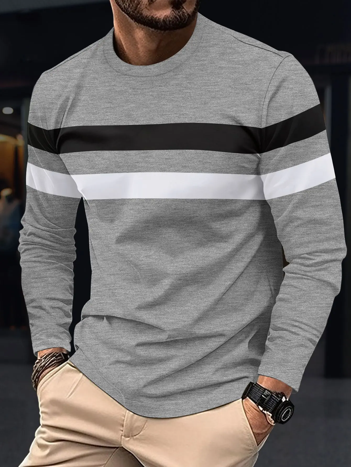 Men’s Autumn and Winter Round Neck Long Sleeve Color Matching Bottoming Shirt Pullover Thin Long Sleeve T-shirt Men