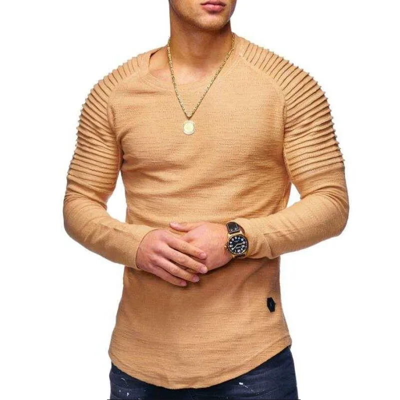 New Fashion Men Summer T-Shirt Long Sleeve Casual Crew Neck Slim Fit Cotton Tshirt