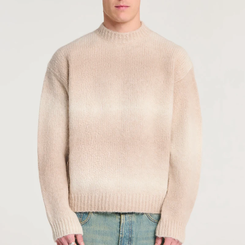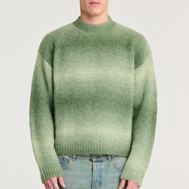 Men Casual Sweater Fuzzy Pullover Striped Pattern Knitwear Long Sleeve Knitted Jumper Winter Mohair Sweater for Men
