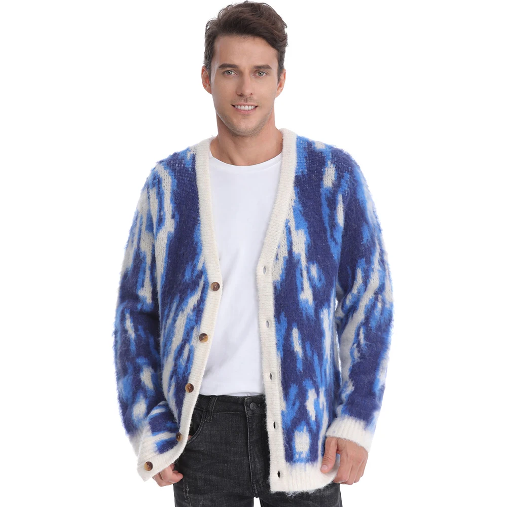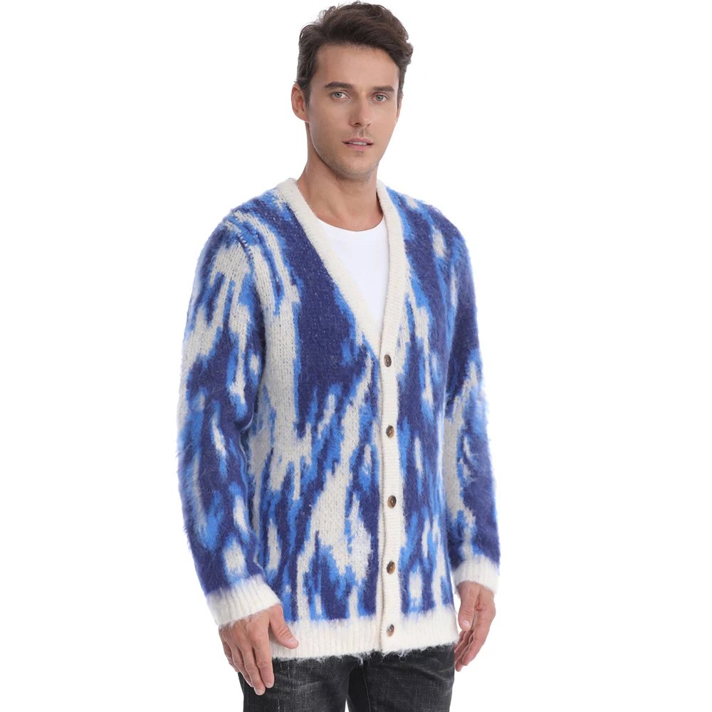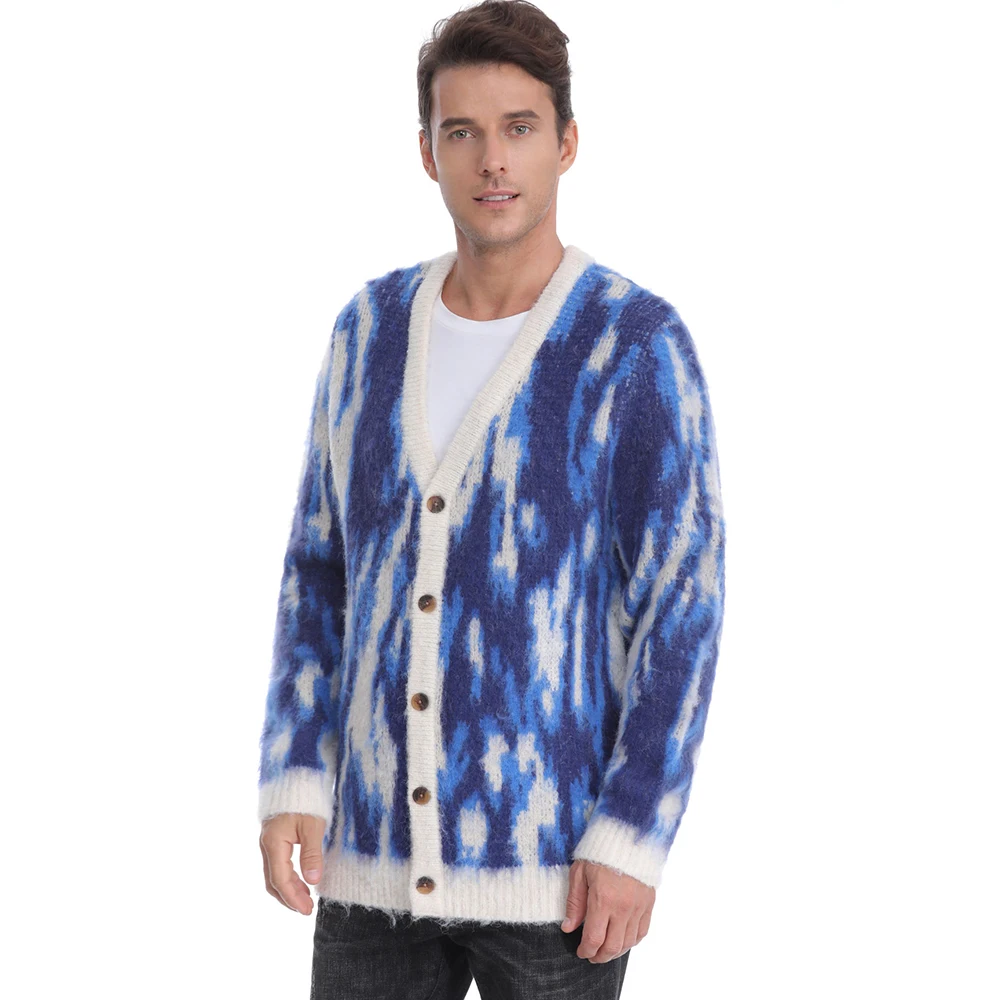 Men Knitted Mohair Sweater Fuzzy Long Sleeve Knitwear Winter Knit Coat Cardigan Mohair Sweater for Men