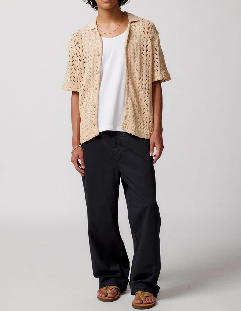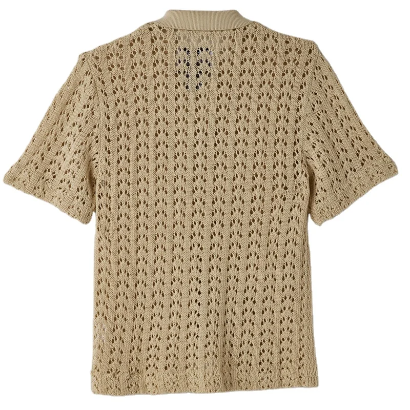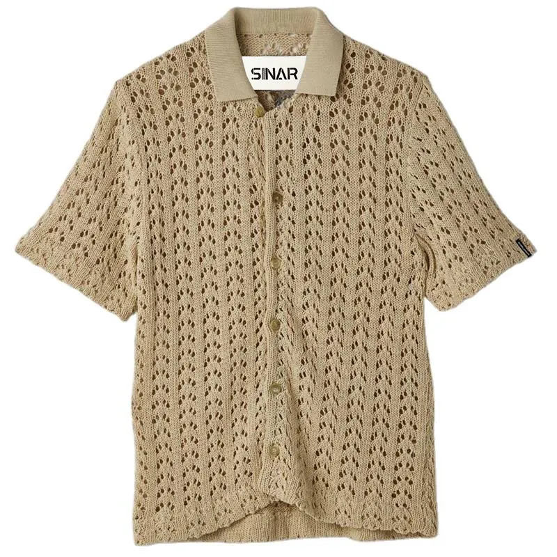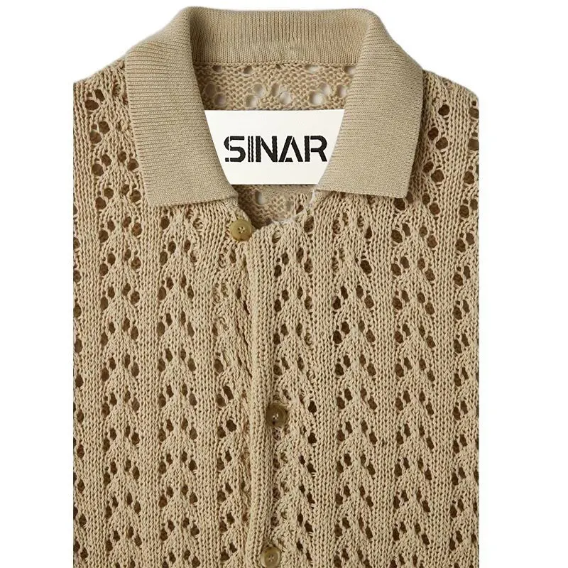 Polo Short Sleeve Button-Down Men Sweater Hollow Sleeve Cardigan Knit Top Spring Knitted Sweater for Men